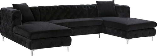 Gwen Black Velvet 3pc. Sectional (3 Boxes)