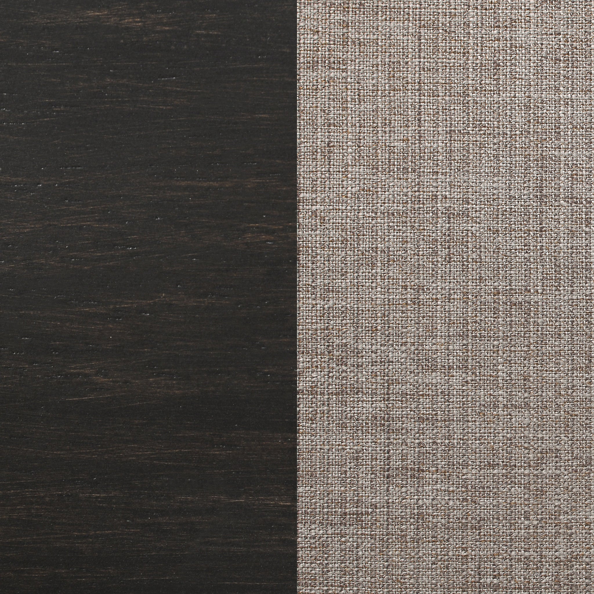 This set of two dining side chairs defines the classic traditional aesthetic with an extra dose of bold, opening up multiple options for assembling a dining space you’ll come to love. Asian hardwood and wood products construction is sturdy and stable, reflecting the best of old-style quality. With a dramatic charcoal sand through finish and notable farmhouse-inspired details that include a flared back silhouette, a ladderback design, and turned front legs. A lightly curved side silhouette offers tapered back legs. Dine or relax with comfort in padded chairs featuring textured light stone brown fabric upholstery.
