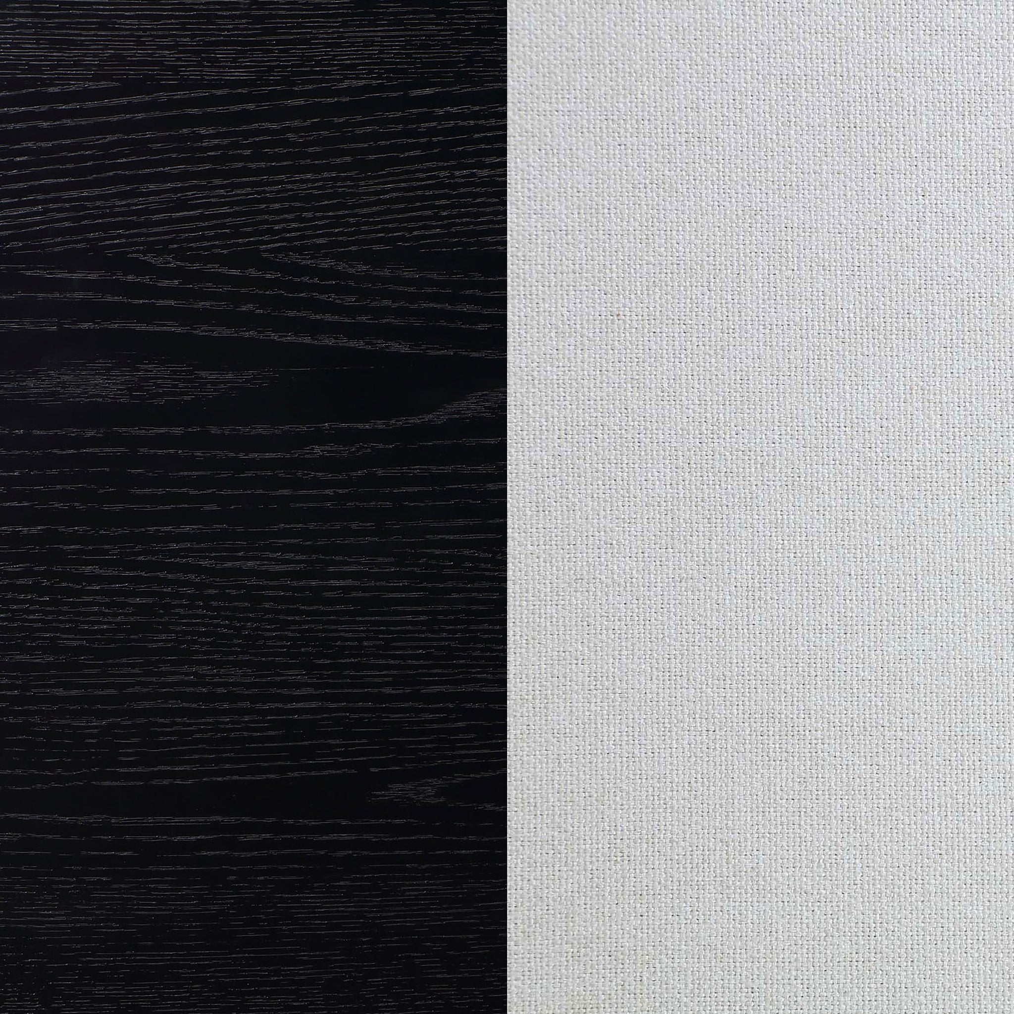 A notable color contrast and ultra-dramatic look make an impact in your modern or transitional dining space, creating a focal point worthy of consideration. This seven-piece wood and fabric dining set is adaptable to embellish a host of settings important to your everyday living. Distressed black finish wood construction on all pieces gains attention to a minimalist table design with straight, flat leg sections under a sleek top with linear silhouetting and a dimensional top chamfer curving along its edges. Chairs offer a clean silhouette with black finish wood framing, tapered legs, and ornate notched tops with linear carvings thrown in for extra dimension. Soft ivory fabric upholstery is intriguingly placed on both sides of top cushions and over a padded seat.