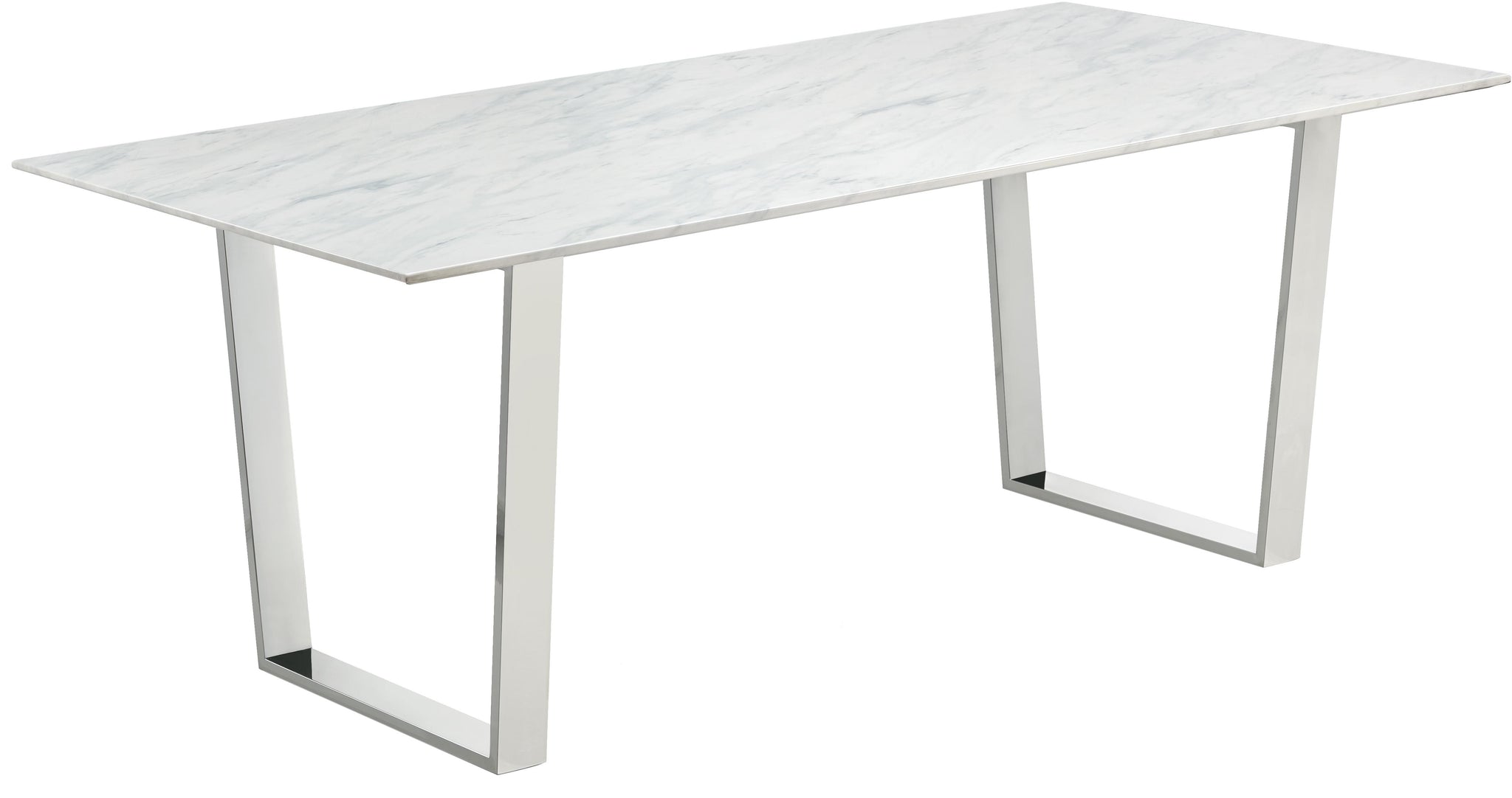 Attract attention to the center of your dining room with Carlton chrome dining table by Meridian Furniture. Featuring a solid stone top and stunning rich chrome finish stainless steel base, this dining table is durable and stylish, complementing your contemporary home decor theme while guaranteeing to withstand the wear and tear of daily use for years to come.