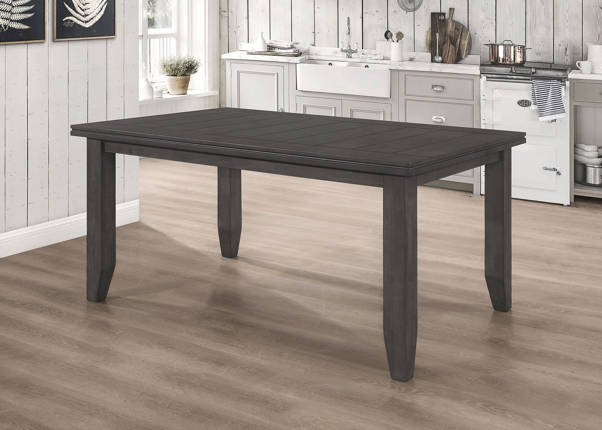 Crafted for durability and timeless appeal, this dining table blends classic design with everyday functionality. Constructed from rubberwood, engineered wood, and oak veneer, it features a plank-style tabletop that enhances its rustic charm. Sturdy legs provide a stable foundation, making it ideal for daily meals and special gatherings alike. Its versatile rectangular shape accommodates various seating arrangements, making it a perfect fit for traditional, transitional, and contemporary dining spaces.