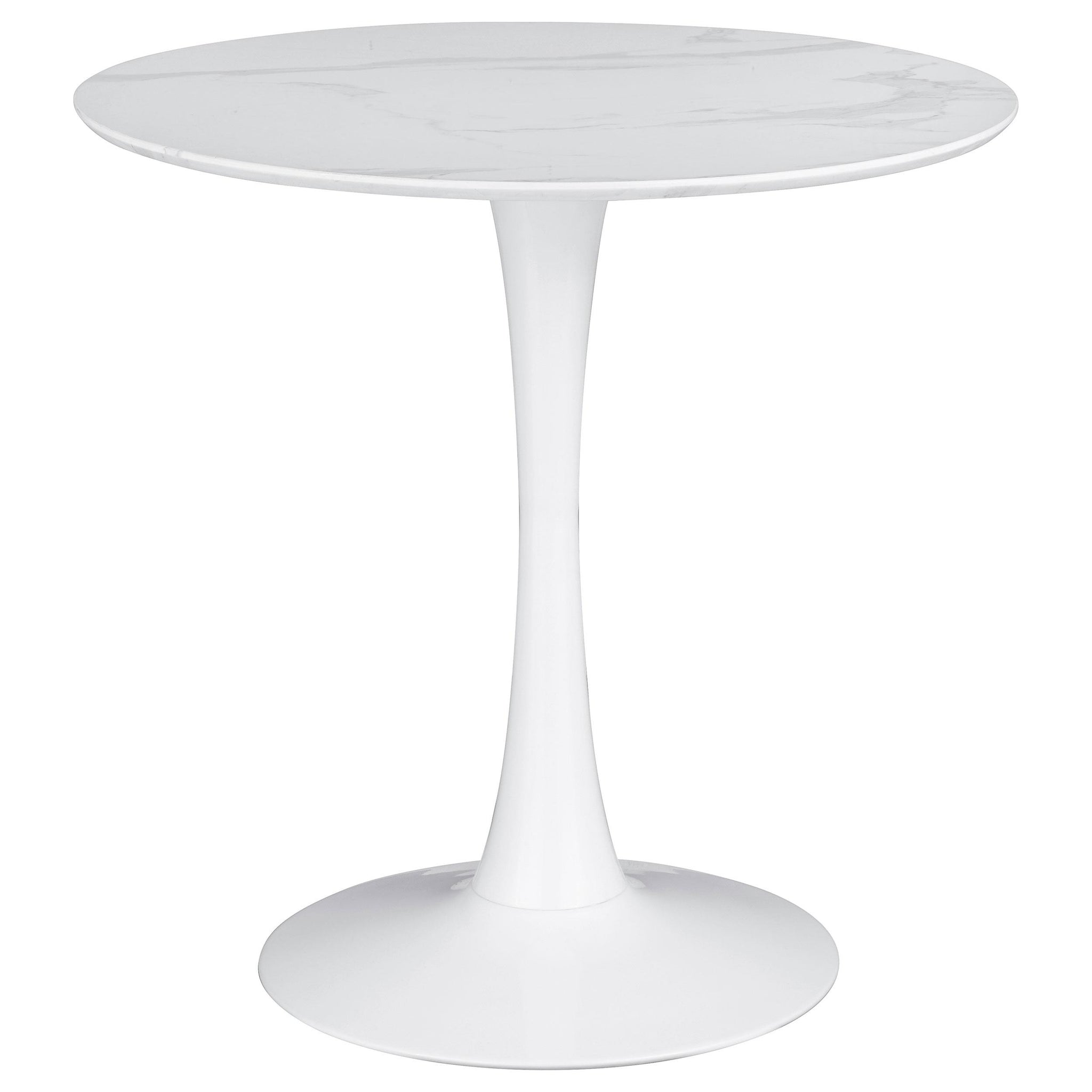 Inspired by classic mid-century design, this round dining table brings timeless elegance to any space. The smooth faux marble top offers a refined aesthetic while providing easy maintenance with a durable polyurethane sealer. A sleek tulip base enhances its sculptural appeal, creating a striking yet minimalist silhouette. Ideal for small dining areas or breakfast nooks, this table comfortably seats two, making it perfect for intimate meals, coffee chats, or stylish home office use.