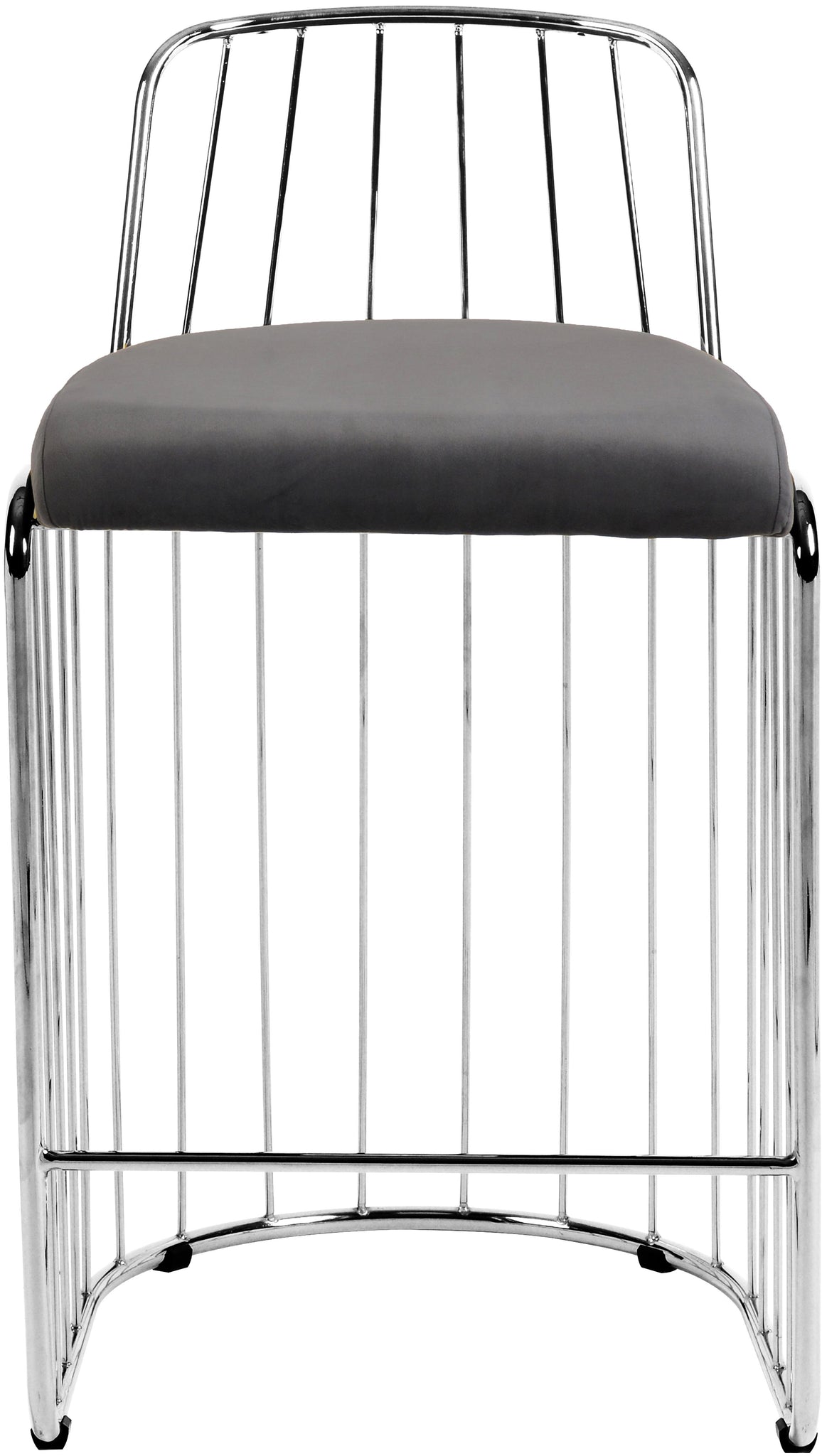 Add dramatic flair to your dining area with this Gio grey velvet stool. Featuring a plush grey velvet cushion and polished gold metal legs, this counter-height stool is perfect for sitting at your modern breakfast bar while enjoying avocado toast for brunch or tossing back a few drinks with friends after work. Its wired contemporary design makes this chair stand out, ensuring it's the focal point of your dining area.