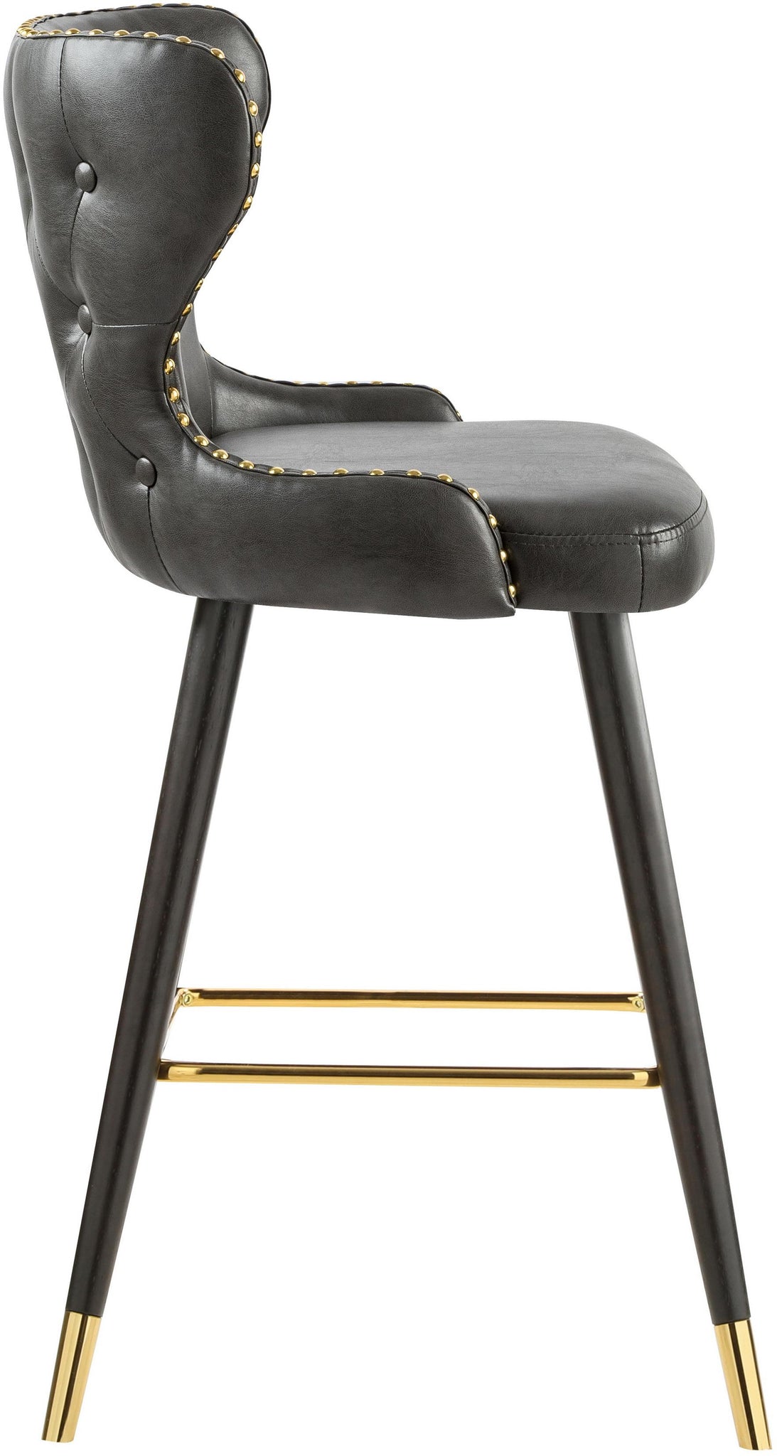 Sit comfortably and stylishly in this Hendrix faux leather bar and counter stool. This handsome stool features grey faux leather upholstery on the seat and back, ensuring that you get a luxe and refined look without paying a lot. But don���t worry���no one will know that this buttery soft upholstery is not the genuine thing. The stool���s espresso wood legs and gold footrest with gold caps lends it a definitive contemporary punch.