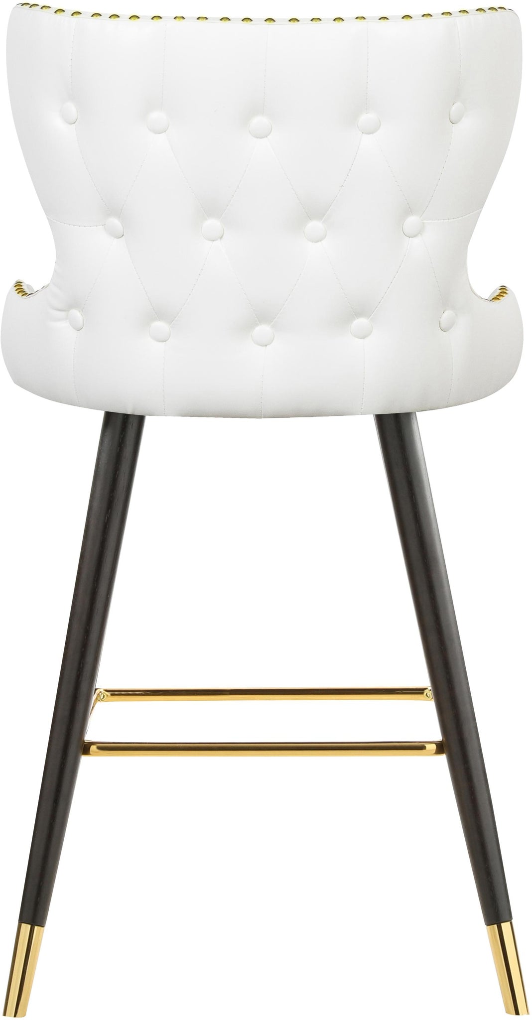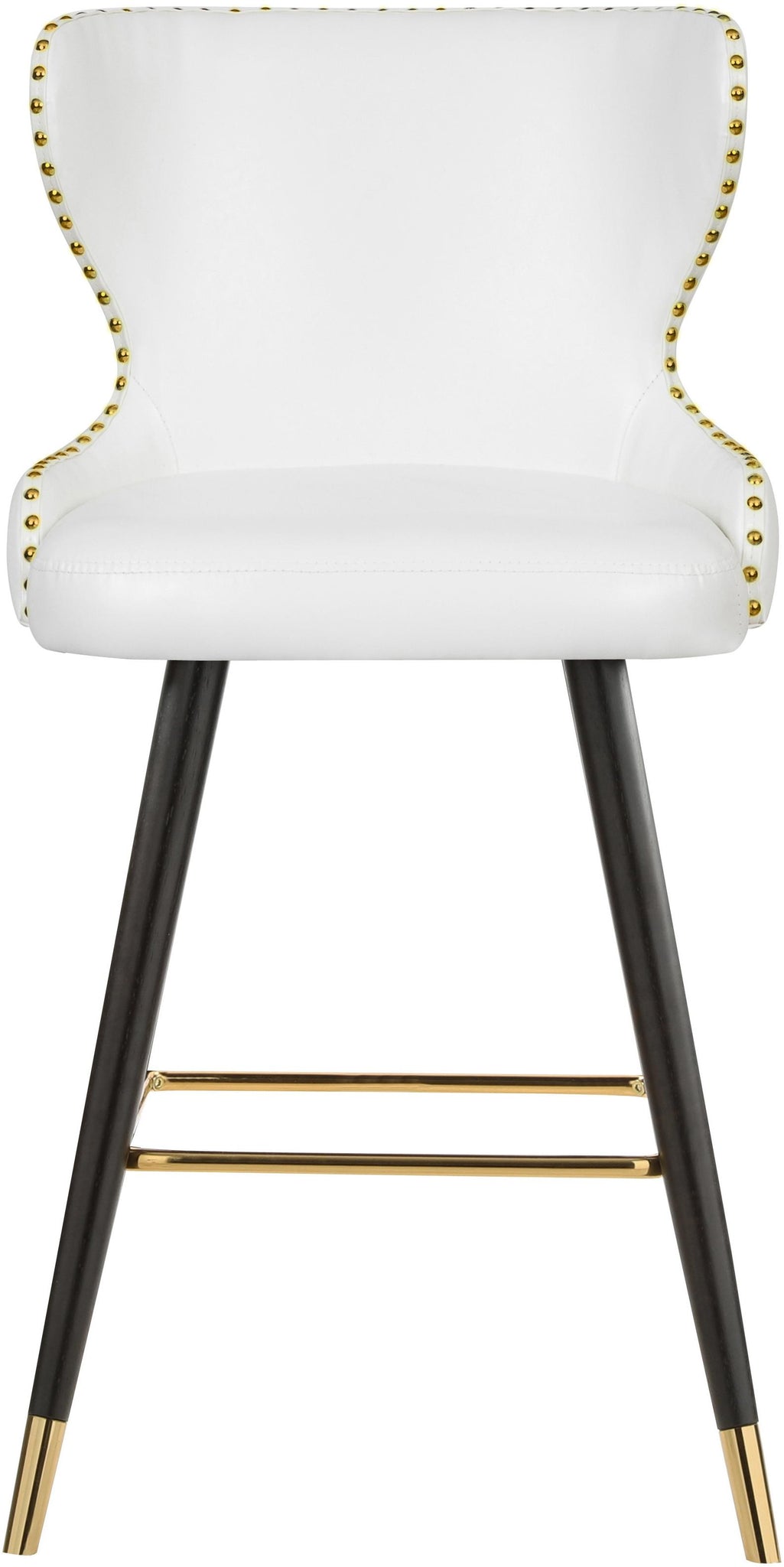 Sit comfortably and stylishly in this Hendrix faux leather bar and counter stool. This handsome stool features white faux leather upholstery on the seat and back, ensuring that you get a luxe and refined look without paying a lot. But don���t worry���no one will know that this buttery soft upholstery is not the genuine thing. The stool���s espresso wood legs and gold footrest with gold caps lends it a definitive contemporary punch.