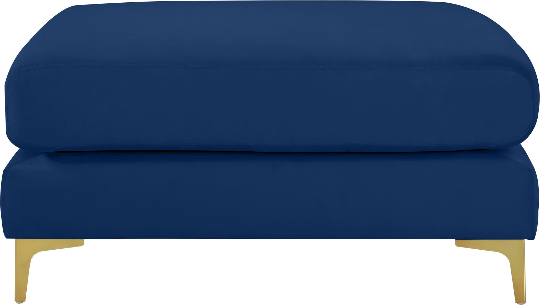 Ready to get cozy? Prop your feet up on the welcoming surface of this Julia velvet modular ottoman and you can do just that! Its soft navy velvet upholstery is soft and supple to the skin, coaxing you to relax, unwind, and sit for a spell. It comes with both gold and chrome legs for a customizable and contemporary finish. Pair this Julia piece with others to form an infinite number of seating configurations to meet your particular decorative desires and space requirements.