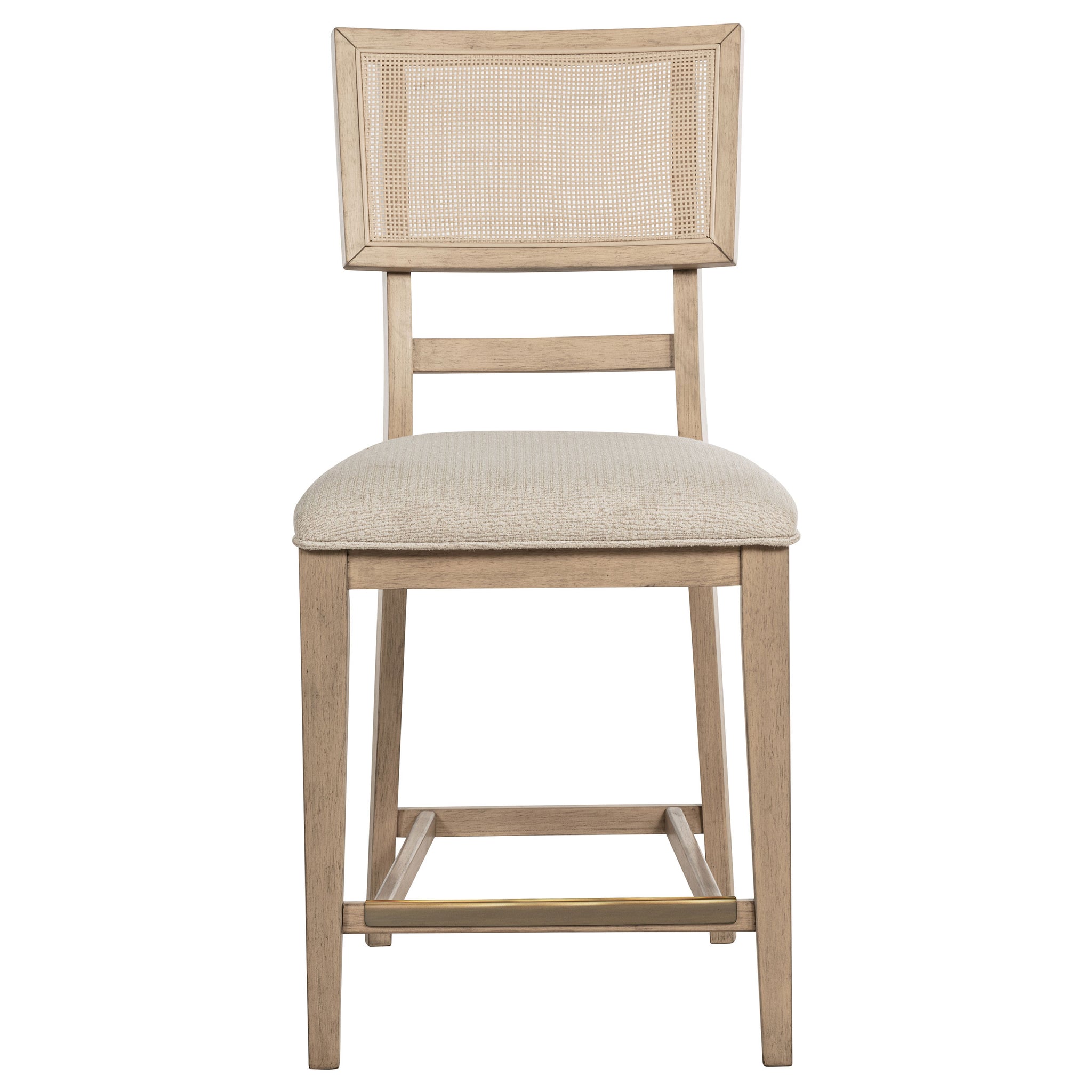 Create a stylish and functional dining space with this beautifully crafted counter-height dining set. Featuring a spacious counter-height table and matching chairs, this set brings natural elegance and modern comfort to your home. The table is crafted from solid wood, engineered wood, and oak veneer, with a smooth rectangular top and rounded edges for a refined look. Its base includes a convenient two-door cabinet, offering storage for dining essentials. The accompanying counter-height chairs feature hand-woven radio weave cane backrests and foam seat cushions upholstered in soft beige fabric for maximum comfort. Complete with brass-finished footrests for durability, this set is perfect for casual family meals or entertaining guests. Key Features: • Counter-height dining set includes a table and six matching chairs • Table crafted from solid wood, engineered wood, and oak veneer with a two-door cabinet base • Chairs feature hand-woven radio weave cane backrests and foam seat cushions upholstered in beige fabric • Brass-finished footrests on chairs for added durability and comfort • Blends natural elegance with practical functionality for modern or traditional spaces