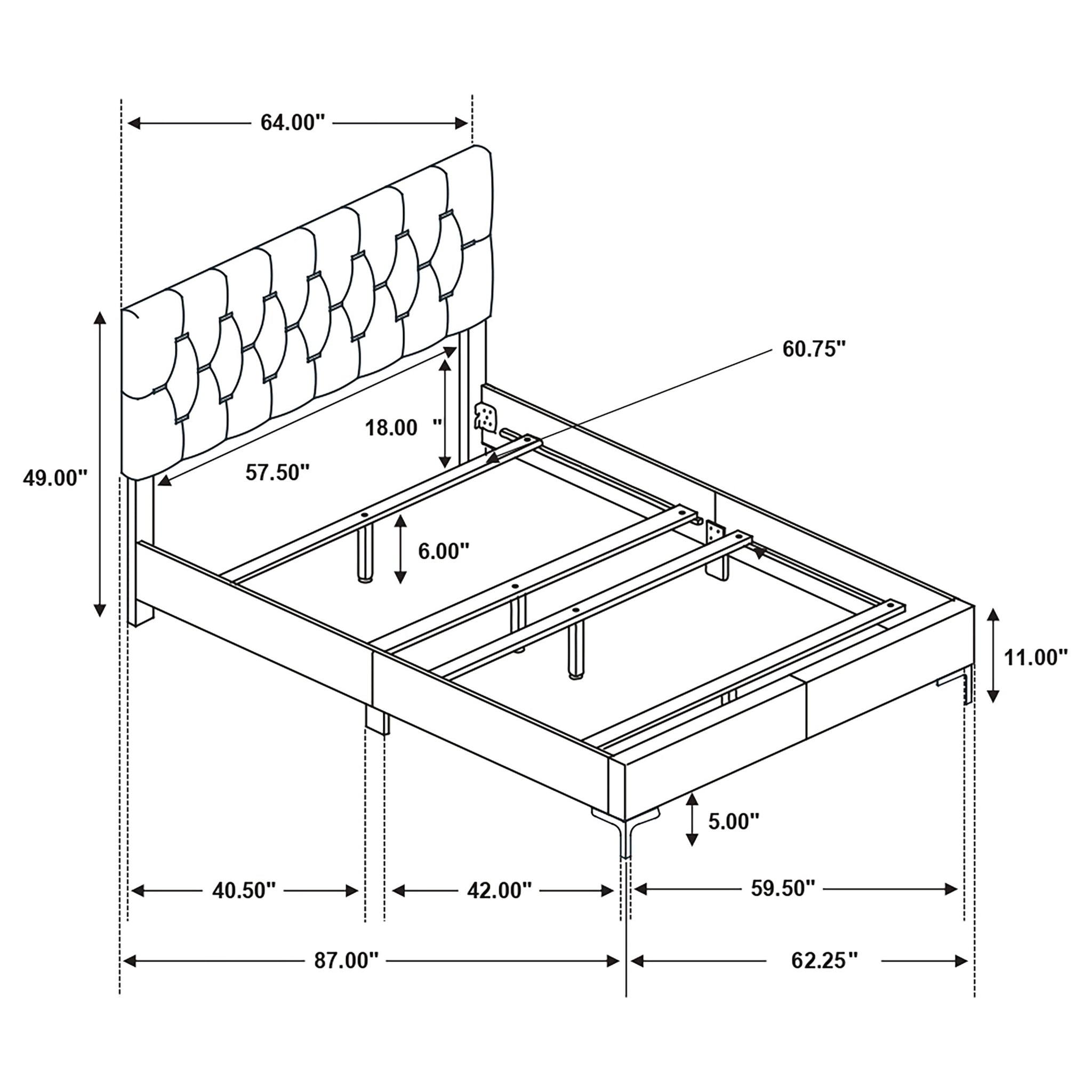 Transform your bedroom oasis into a dramatic interior with this modern glam panel bed. Upholstered in plush, black velvet throughout the foam padded headboard and sides, this stunning bed offers a glamorous expression to your space. A diamond tufted headboard accented with gleaming gold bars in place of buttons creates a new, contemporary touch that catches the eye. Matching gold metal bracket legs create a luxe industrial flair too. Place this modern bed in a bedroom for a chic and sophisticated look.