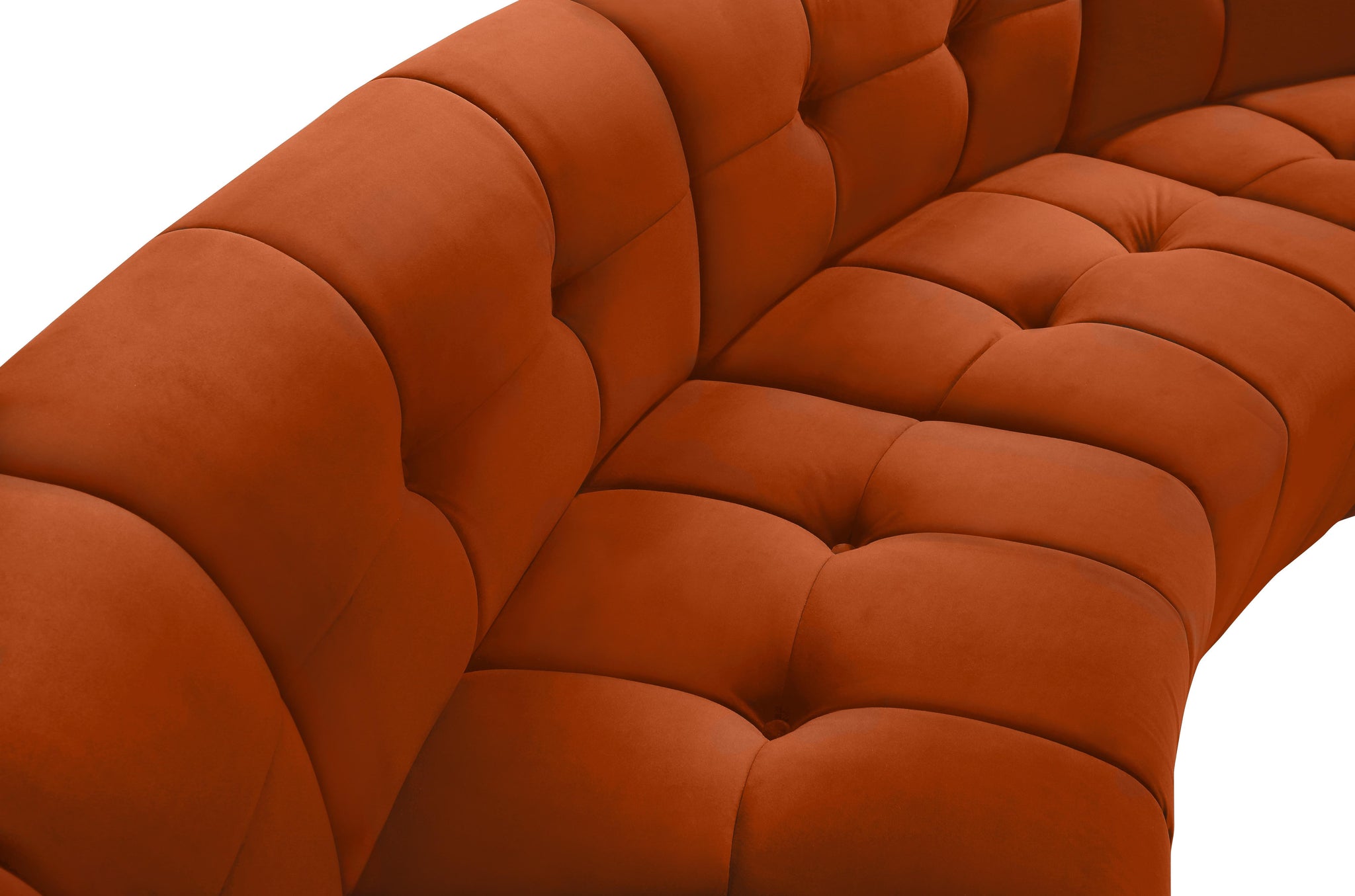 Invest in your home's comfort with this Limitless 6 Piece Sectional. This modular unit offers tons of flexibility in the number of ways that you can put each piece in the Limitless collection together to get the ideal customized look. Upholstered in cognac velvet, this beautiful piece is soft and cool to the touch, so you can feel comfortable from every angle. Button and channel tufting add to this unit���s upscale look and contemporary charm.