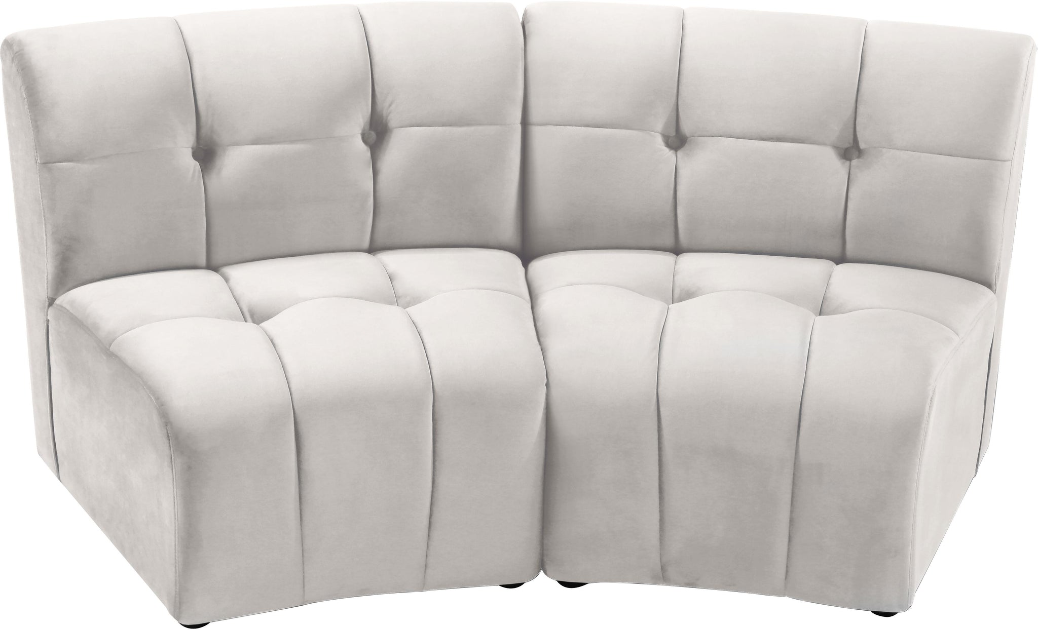 Invest in your home's comfort with this Limitless loveseat. This modular unit offers tons of flexibility in the number of ways that you can put each piece in the Limitless collection together to get the ideal customized look. Upholstered in cream velvet, this beautiful piece is soft and cool to the touch, so you can feel comfortable from every angle. Button and channel tufting add to this unit���s upscale look and contemporary charm.