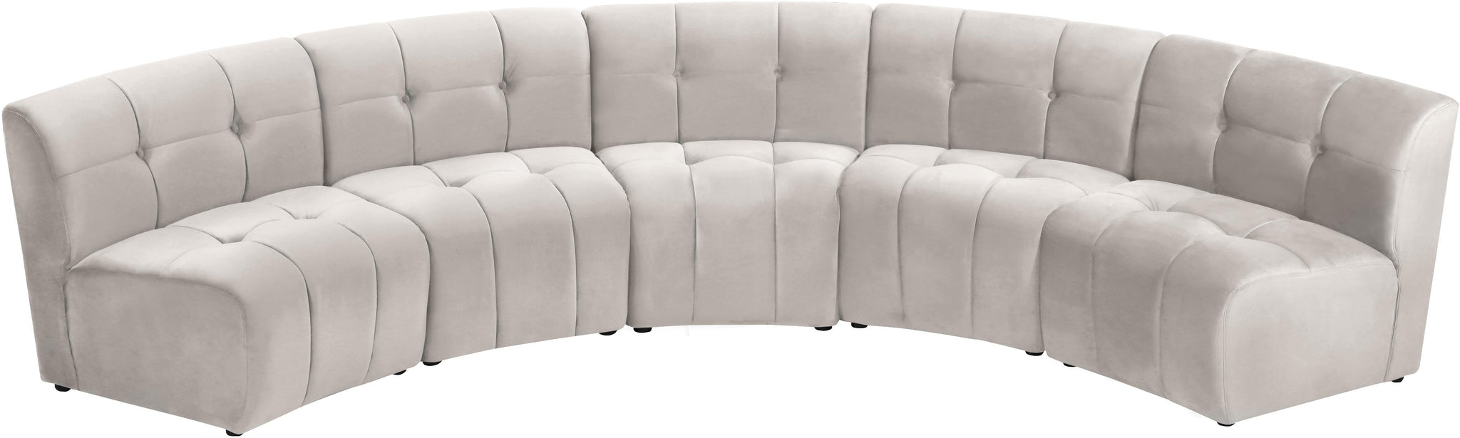 Invest in your home's comfort with this Limitless 5 Piece Sectional. This modular unit offers tons of flexibility in the number of ways that you can put each piece in the Limitless collection together to get the ideal customized look. Upholstered in cream velvet, this beautiful piece is soft and cool to the touch, so you can feel comfortable from every angle. Button and channel tufting add to this unit���s upscale look and contemporary charm.