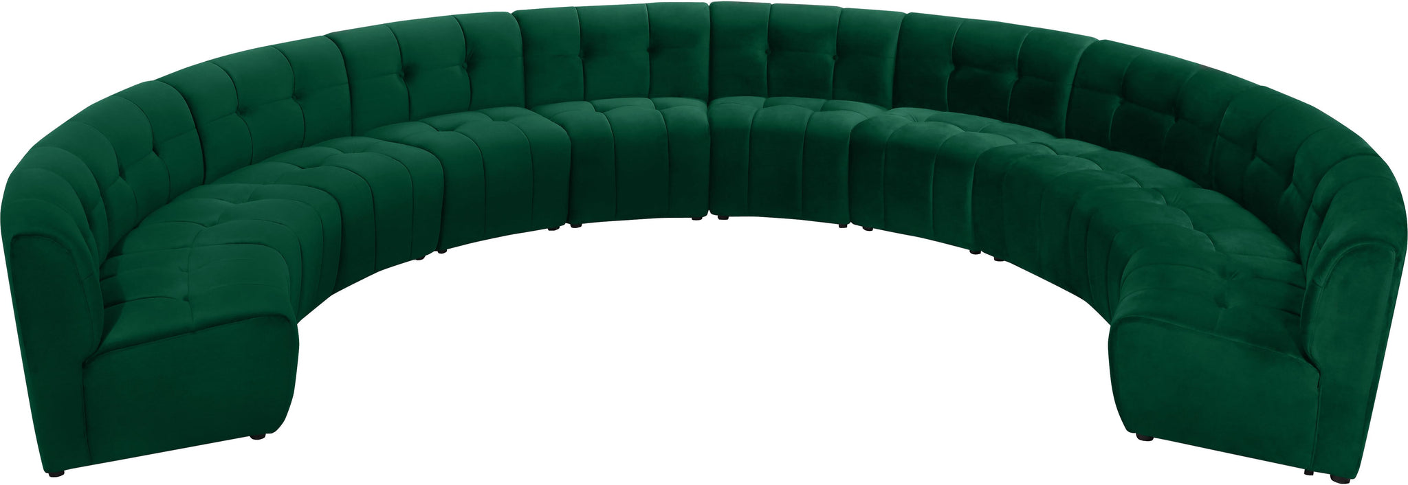 Invest in your home's comfort with this Limitless 10 Piece Sectional. This modular unit offers tons of flexibility in the number of ways that you can put each piece in the Limitless collection together to get the ideal customized look. Upholstered in green velvet, this beautiful piece is soft and cool to the touch, so you can feel comfortable from every angle. Button and channel tufting add to this unit���s upscale look and contemporary charm.