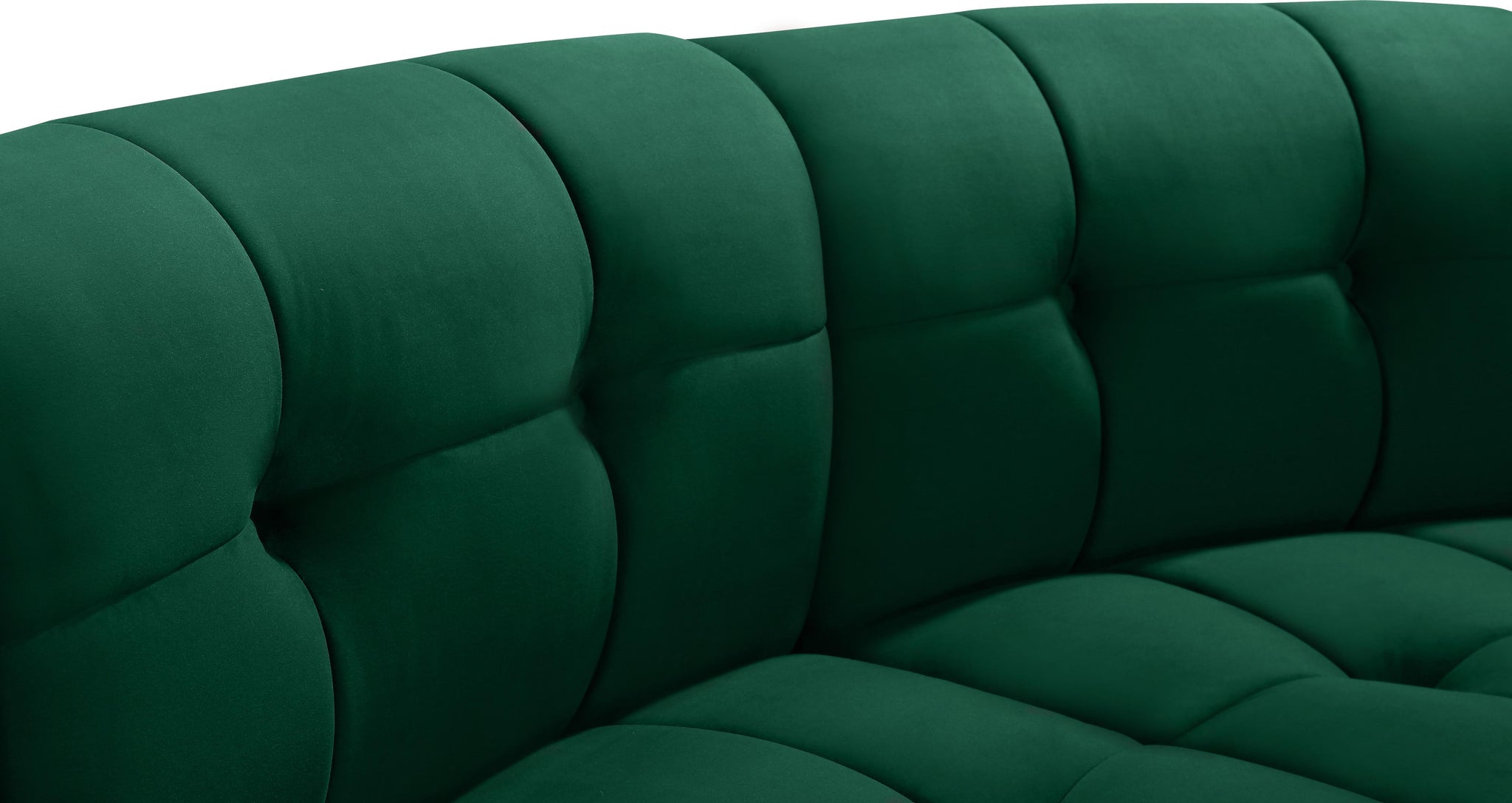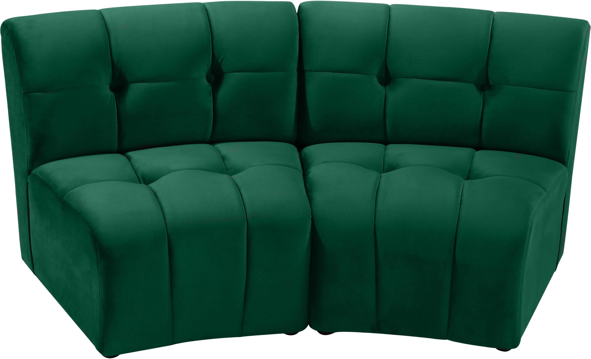 Invest in your home's comfort with this Limitless loveseat. This modular unit offers tons of flexibility in the number of ways that you can put each piece in the Limitless collection together to get the ideal customized look. Upholstered in green velvet, this beautiful piece is soft and cool to the touch, so you can feel comfortable from every angle. Button and channel tufting add to this unit���s upscale look and contemporary charm.