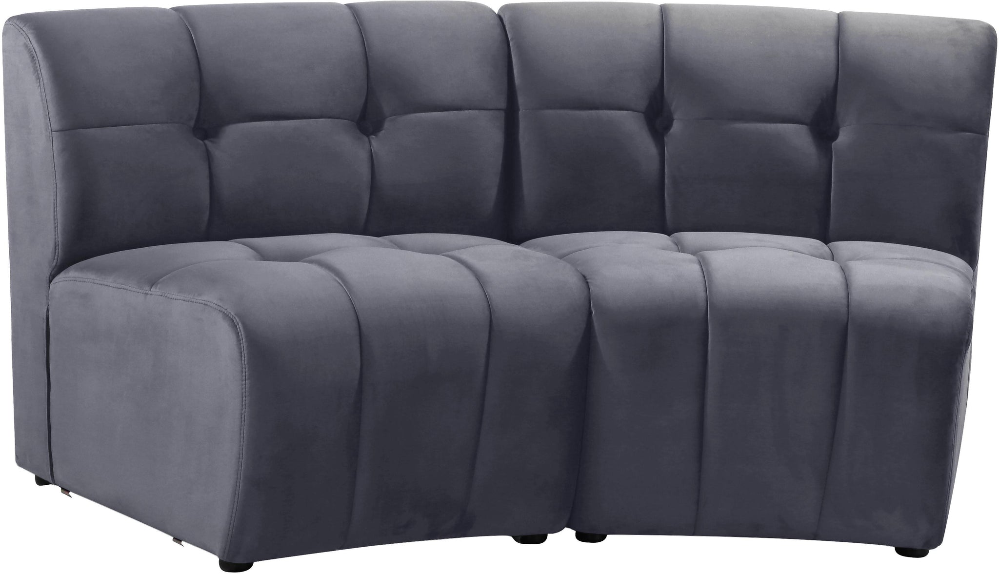 Invest in your home's comfort with this Limitless loveseat. This modular unit offers tons of flexibility in the number of ways that you can put each piece in the Limitless collection together to get the ideal customized look. Upholstered in grey velvet, this beautiful piece is soft and cool to the touch, so you can feel comfortable from every angle. Button and channel tufting add to this unit���s upscale look and contemporary charm.