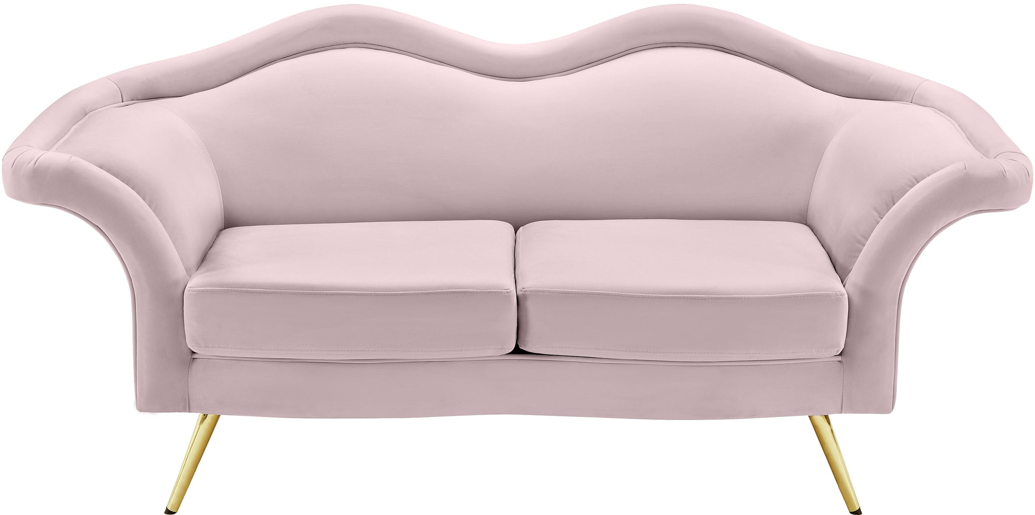 Set your sights on elegance with this Clarissa Pink Velvet Loveseat. This stunning loveseat features plush velvet upholstery that's soft and supple to the touch, adding a level of luxury to naptime or making for a lavish evening of TV binge-watching. This svelte sofa has a contemporary design with rolled arms and elegant slanted legs made from stainless steel with a goldtone finish. Buy it on its own, or add it to your living room or den with the available sofa and chair.