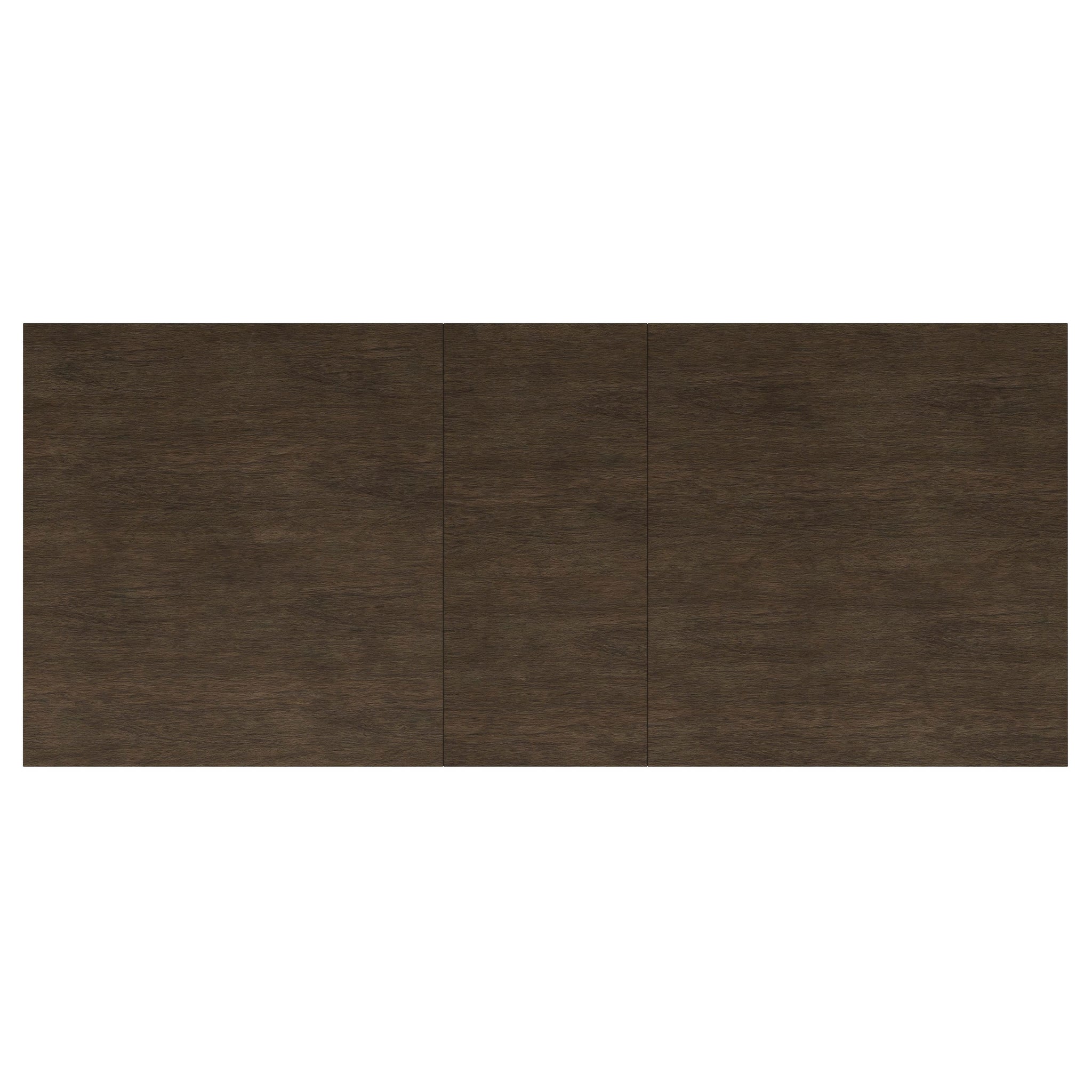 Create a soothing, relaxed ambiance in your welcoming dining room with a transitional five-piece dining set. The set centers on a rectangular table crafted in rubberwoods and graced with a warm, neutral brown finish. Angular support details add trestle-inspired style for a hint of farmhouse flair to the table, which includes an extension leaf for guests. Four side chairs are included, each boasting a matching wooden frame with a plush padded seat in neutral beige upholstery. Rectangular seat backs add rattan, bringing airy appeal and casual character in a kitchen or dining room. Key Features: • Clean lines and a mix of textures infuse character into a transitional five-piece dining set • Warm, natural brown wood grain finish pairs with a trestle-style table base • Charis features rattan backs in a light brown finish that creates warmth and engaging flair • Seats include plush foam padding and neutral beige upholstery fabric for a versatile look • Table includes an 18-inch extension leaf that's ideal for larger spaces, families, and entertaining