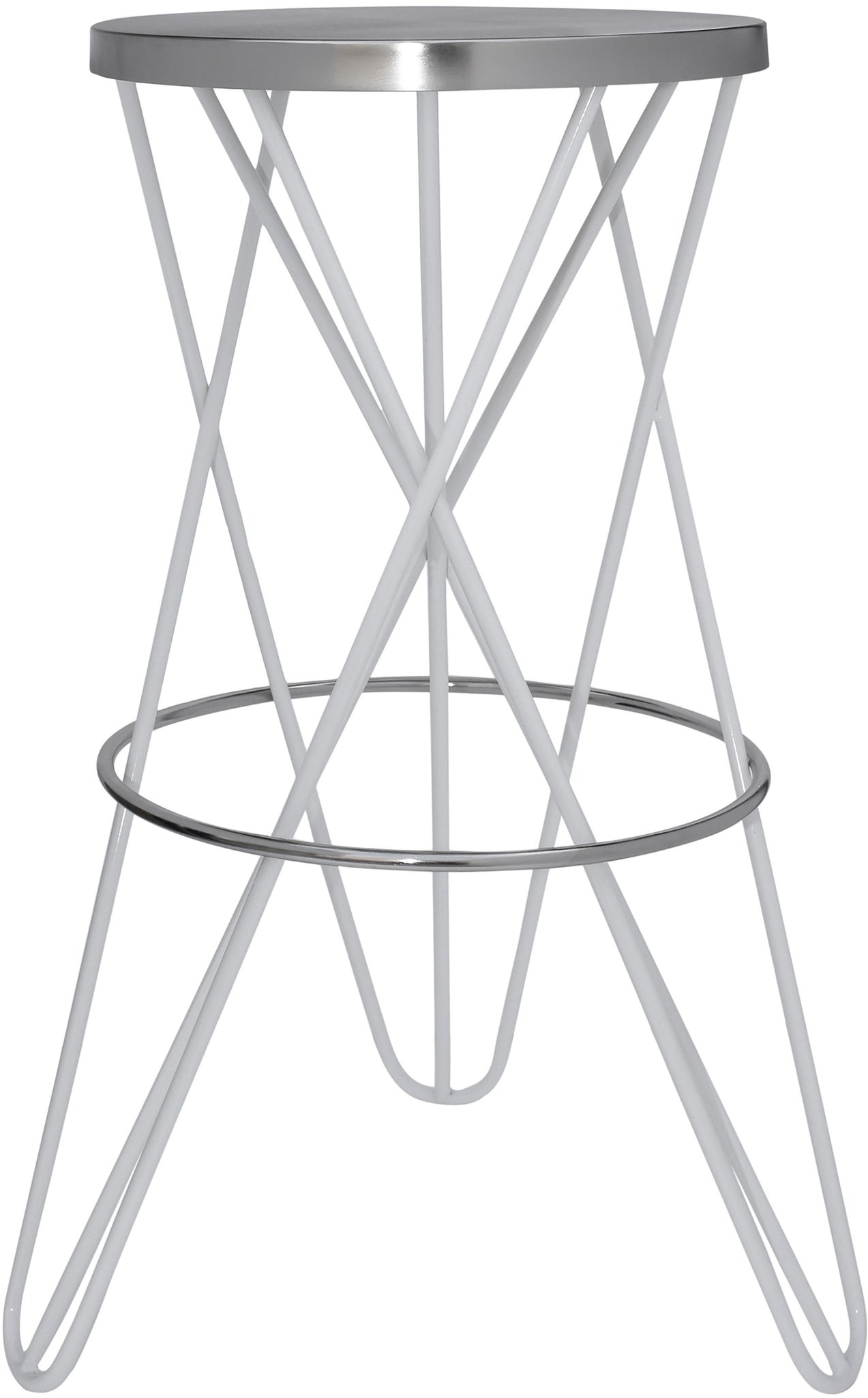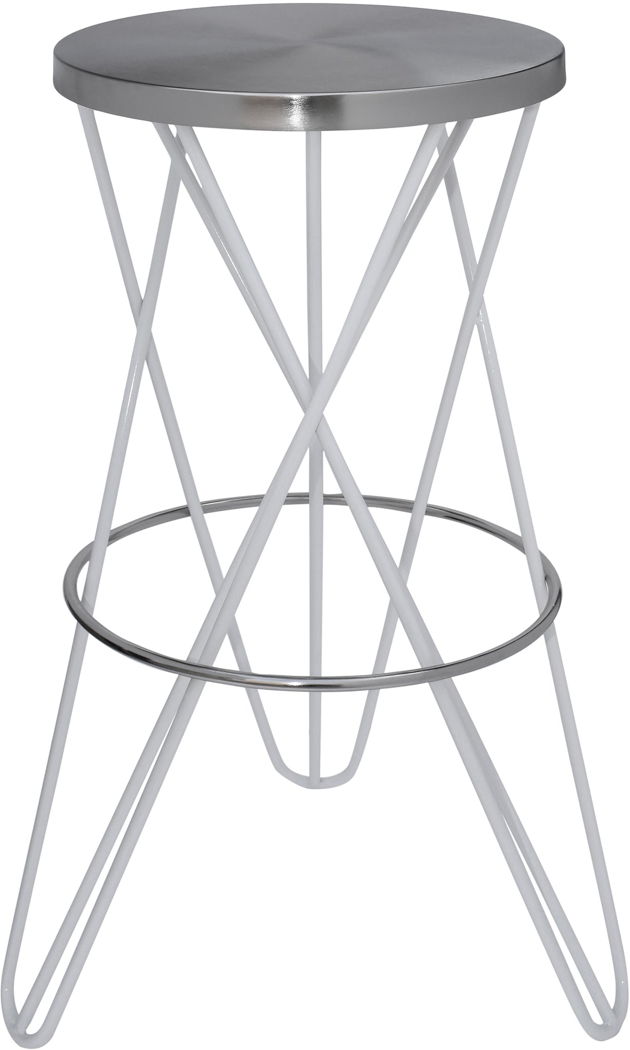 - Brushed Silver Iron / White Powder Coated Bar Height Stool
