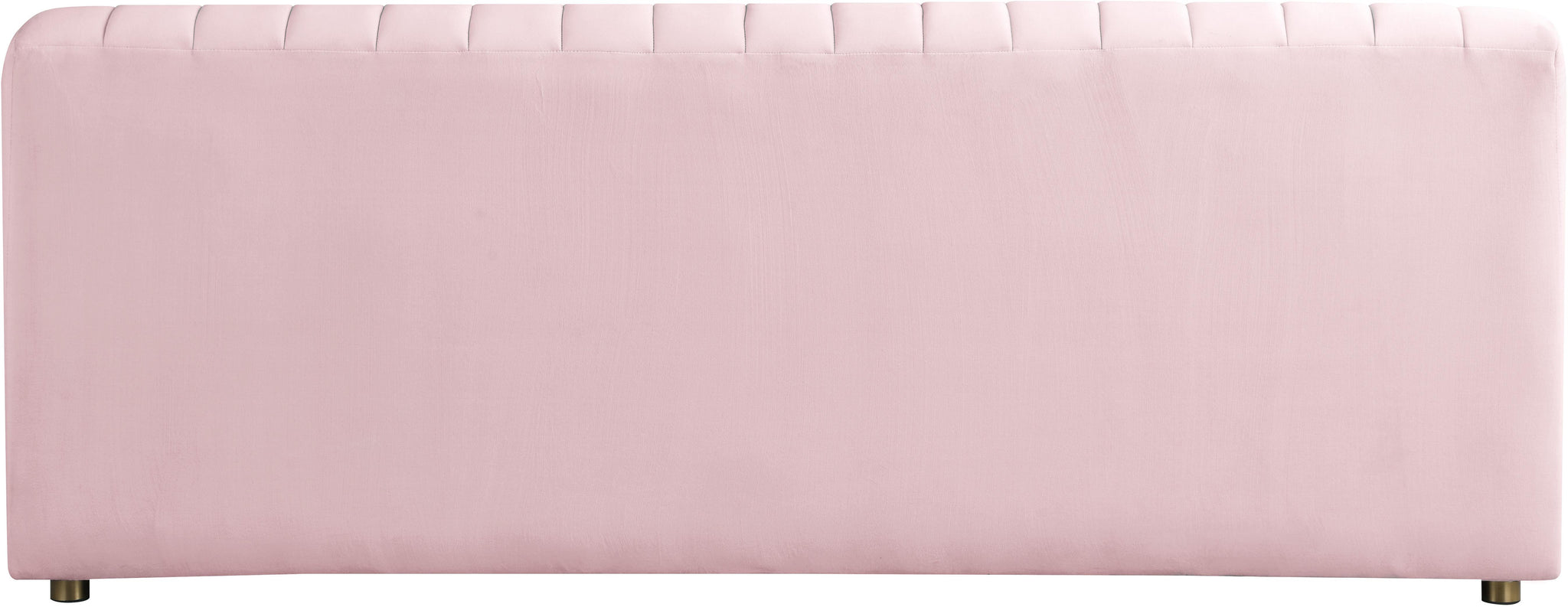 Express your bold, contemporary side with this Naya velvet love seat. This handsome piece is upholstered in pink velvet and blends seamlessly with the other units in the Naya collection, or it looks equally as beautiful on its own. Deep channel tufts run the length of the back, arms and seats of this unit, ensuring its exceptional comfort while giving it a decidedly modern vibe.