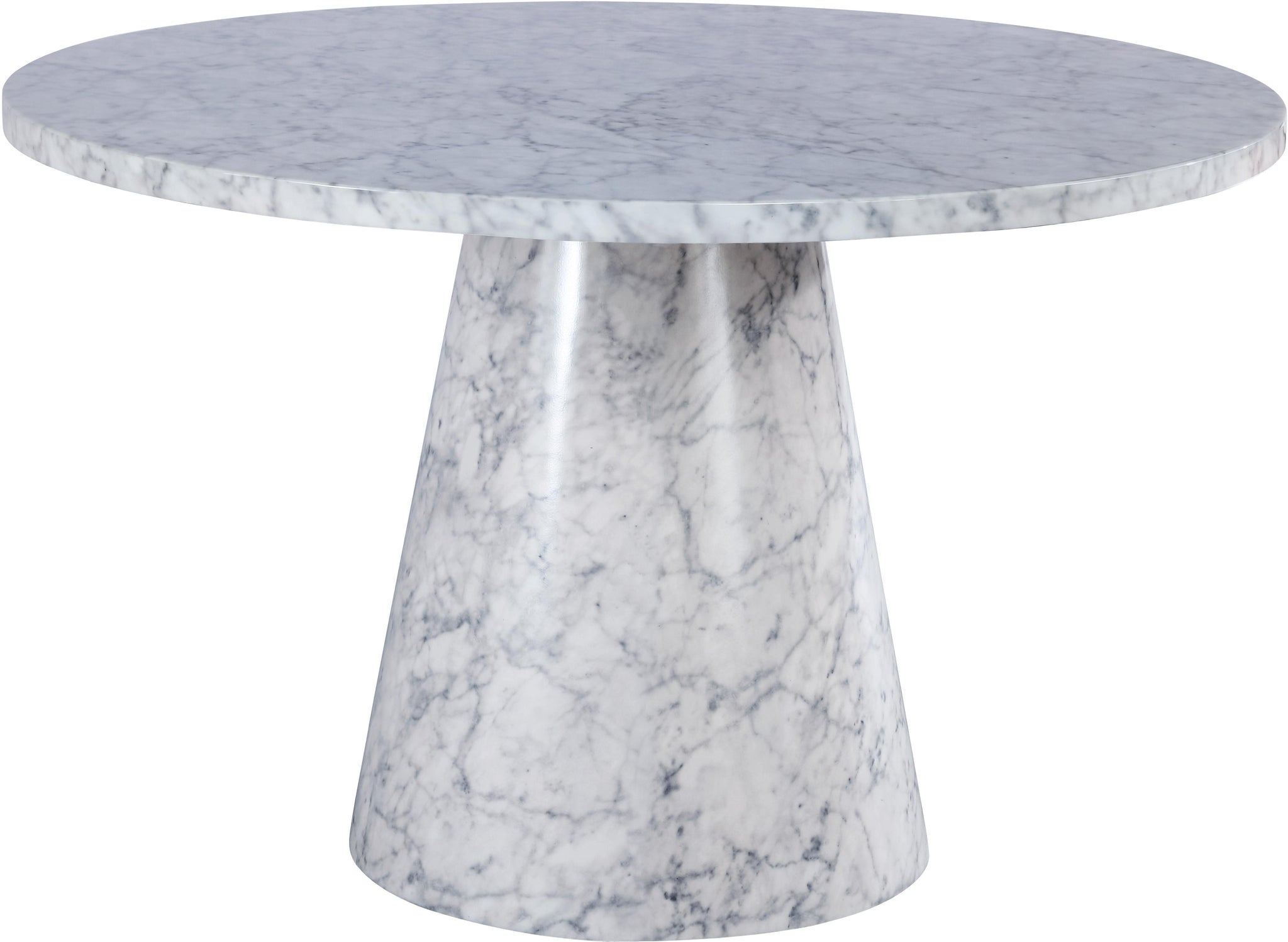 Imbibe your dining room with a fresh new look with this super contemporary Omni dining table. This 48-inch table is made from wood with a lovely white faux marble finish with grey graining that looks so real, no one will guess it���s less than authentic. Add your favorite chairs to this pretty table for a modern, up-to-the-minute look in your dining room space.