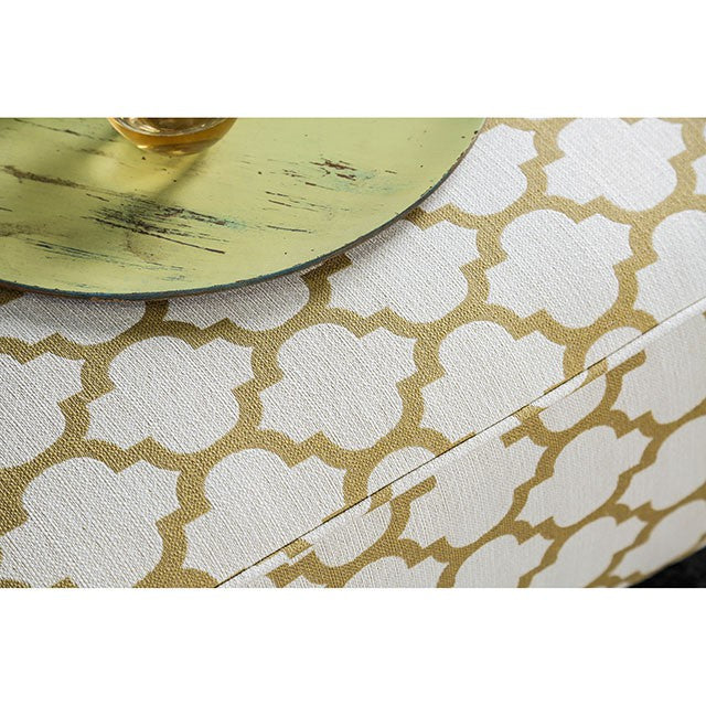 The Moroccan lattice pattern on this ottoman is the perfect way to bring a touch of worldly forms into your home. Its size allows more than one person to prop their feet and relax.