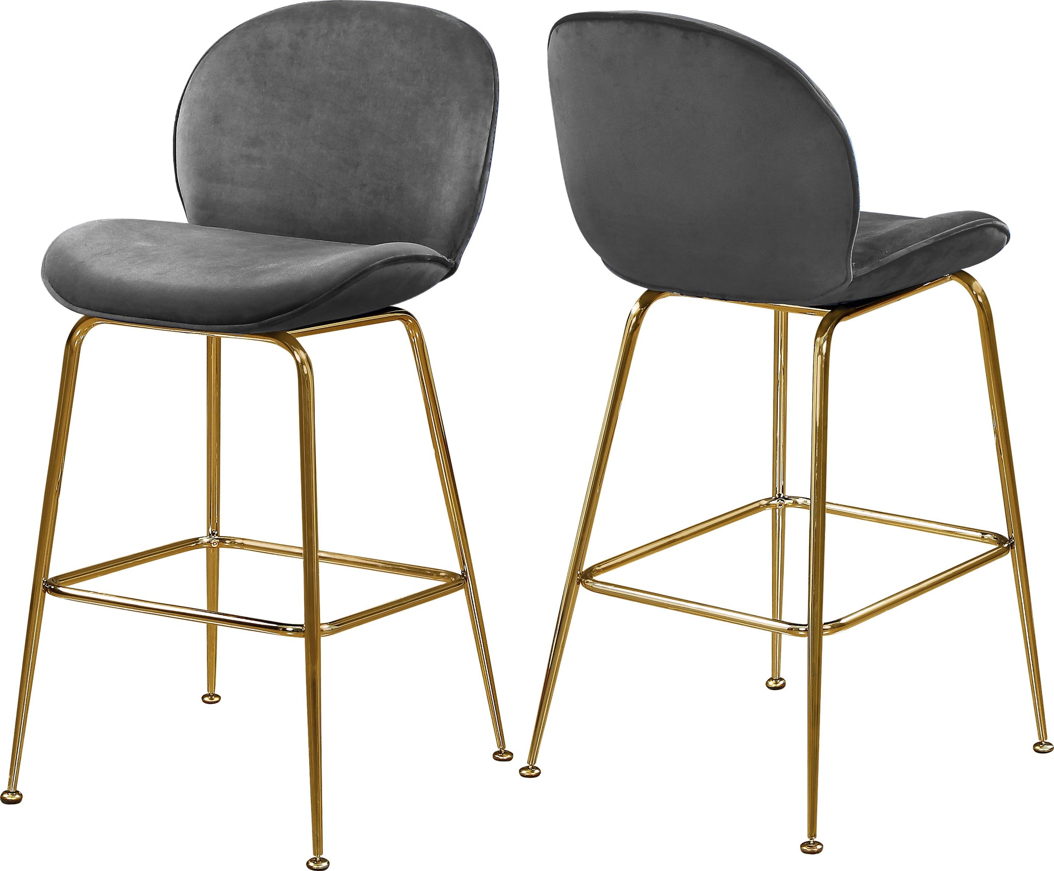 Rev up the wow factor in your space with this Paris Grey Velvet Counter Height Stool. The rounded back and minimalist frame lend it a modish feel, and the velvet upholstery is sleek to the touch, adding a comfortable edge to your home bar. The polished gold metal frame lends it a luxe feel, and the counter height makes it ideal for your kitchen counter if desired. A foot rail along the front adds stability to the stool while also giving you a place to rest your feet.