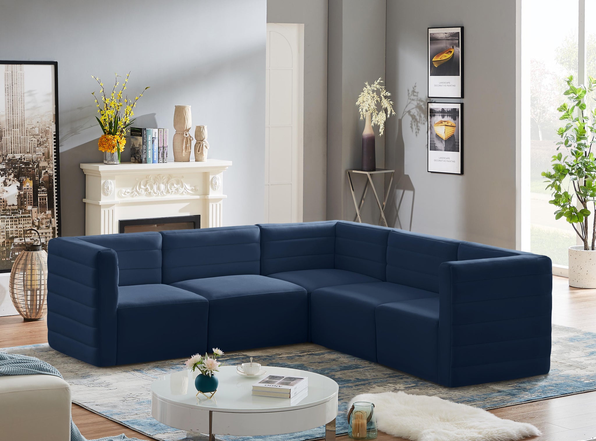 Quincy Navy Velvet Modular Sectional