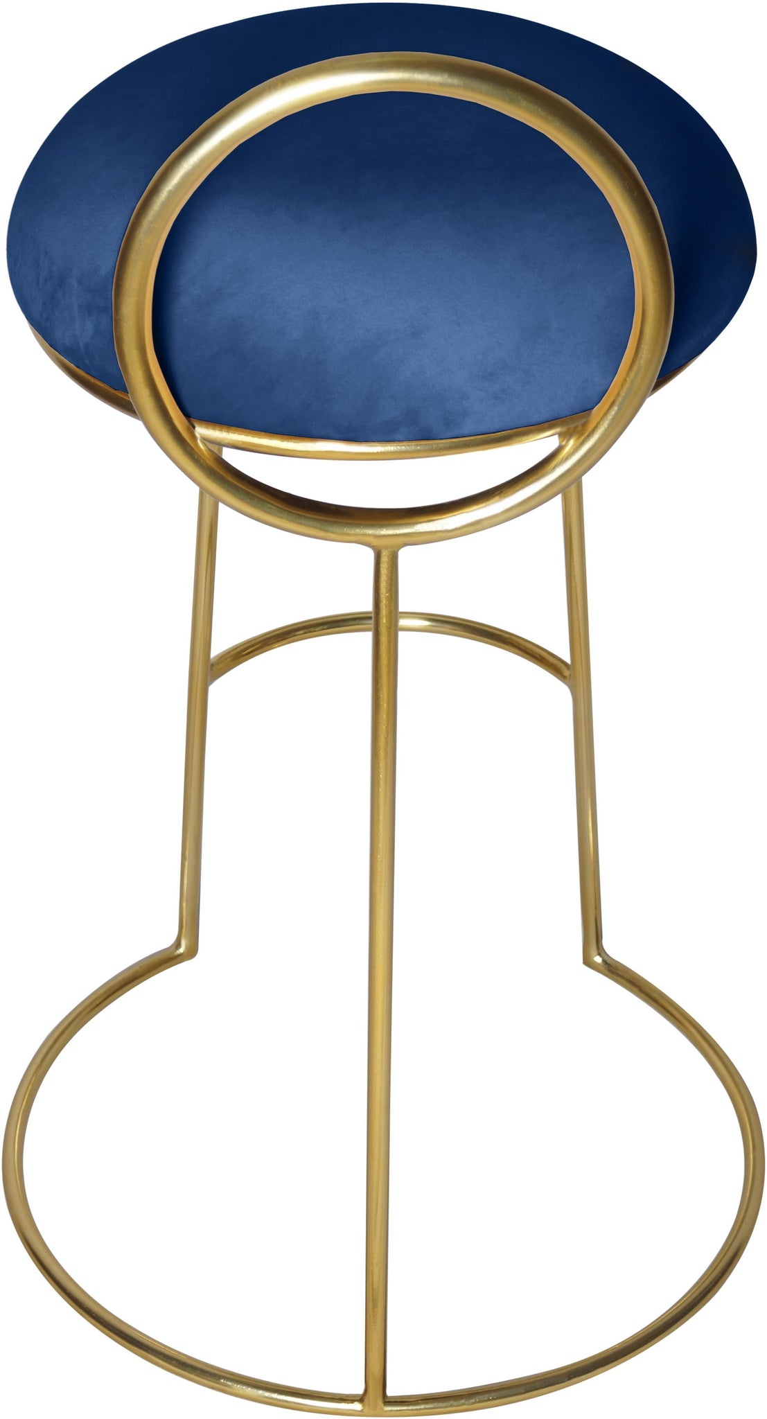 Elegance comes to your home counter with this Ring velvet counter stool. Soft navy velvet makes this a sleek addition to your home counter or bar setup, while a brushed gold finish ensures its sophisticated demeanor at breakfast time or during evening cocktail hour. The padded cushion keeps them happy while they dine or drink, and this counter-height stool features a solid metal frame for strength, resilience and durability.