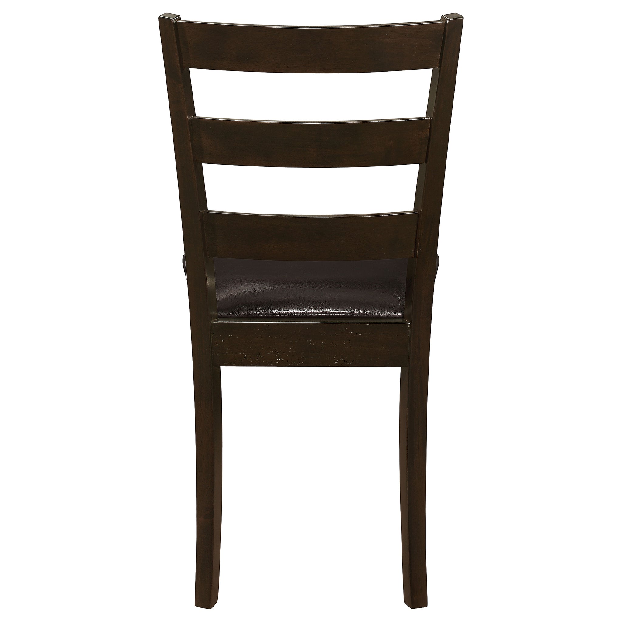 This five-piece dining set brings a perfect blend of everyday comfort and timeless style. Crafted from solid rubberwood, engineered wood, and okume veneer, the rectangular table features clean lines and tapered legs in a rich cappuccino finish. The matching chairs and bench offer padded seats upholstered in dark brown leatherette for a warm, inviting look. Ideal for family meals or casual gatherings, this versatile dining set adds a refined yet approachable touch to contemporary or transitional interiors. Key Features: • Five-piece dining set combines timeless design with modern everyday functionality • Rectangular table in cappuccino finish features clean lines and bold tapered legs • Crafted from rubberwood, engineered wood, and okume veneer for durable strength • Ladder-back chairs include padded seats in dark brown leatherette upholstery • Matching bench adds flexibility and extra seating for casual dining gatherings • Perfect for family meals or hosting guests in transitional or modern interiors