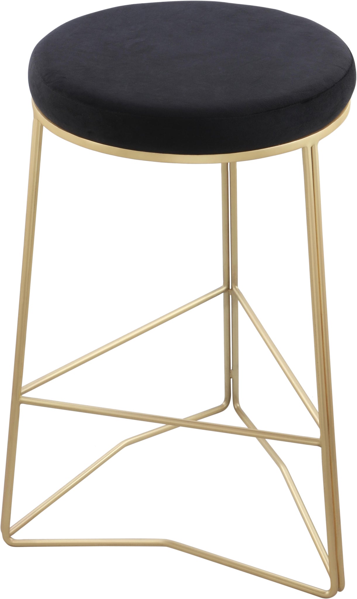Remake the look of your kitchen counter with the addition of this Tres velvet counter stool. This handsome stool is both elegant and simple at the same time, making it a great addition to minimalist d?�cor. The soft black velvet upholstery on the plump seat cushion is welcoming and comfortable, so you can enjoy sitting to the max. The stool rests on rich brushed gold metal legs for a solid, sturdy foundation.