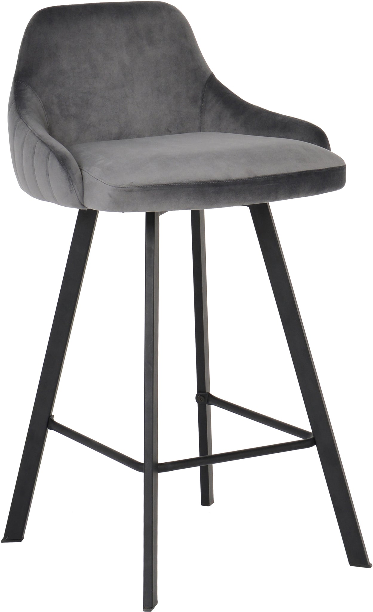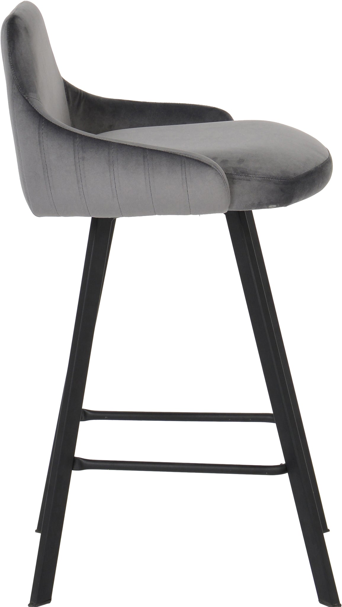 Make a bold statement in your dining space with this Viviene grey velvet stool. Plush grey velvet upholstery gives it a sleek, chic look while providing a comfy, soft place to sit and enjoy brunch at your breakfast bar, while matte black legs provide sturdy support while adding dramatic flair. This counter height stool is perfect for any contemporary dining decor and can be used at a breakfast bar or tall dining table.